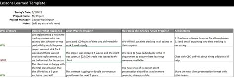 Professional Engineering Project Lessons Learned Template. Download this free template and use it on your project today. Start by collecting insights and categorizing them into success/failure and.