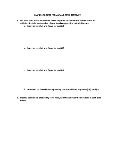 Mat 274 benchmark format and style template 1. For each part, insert your sketch of the required area under the normal curve. Mat 274 project format and style template 1.