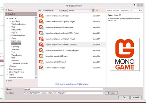 With the monogame extension installed, you can now create a new project. Monogame also won’t work with the flatpak version (at least the 3.6 won’t) because it has it’s own content builder which is not sandboxed. I'm trying to dive into monogame, but the opengl template appears to be broken somehow, and fails to build.