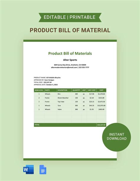 Instantly Download Project Bill Of Materials Template & Example In Microsoft Word (Doc), Google Docs, Format.