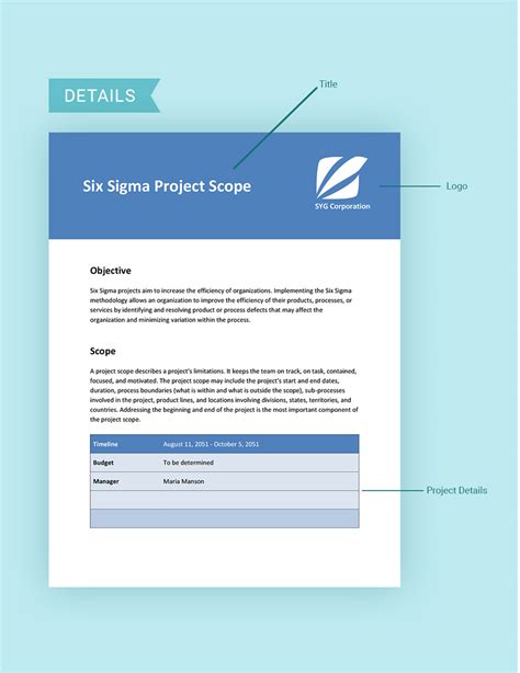 +24 Six Sigma Project Scope Template. Every six sigma project follows a defined series of steps which include specific targets for improvement. That’s where a project charter comes in.